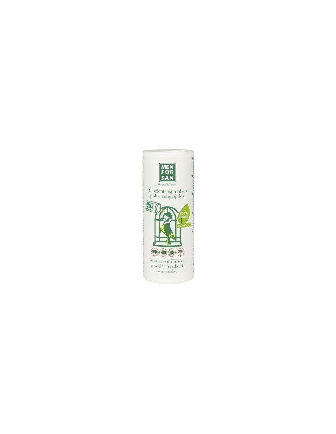 Repelente natural en polvo de uso directo para tratamiento preventivo contra toda clase de insectos, piojillos y ácaros.